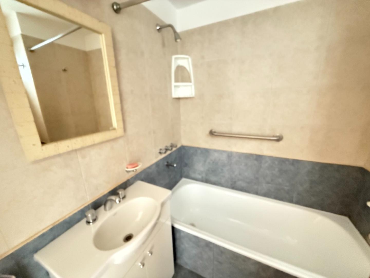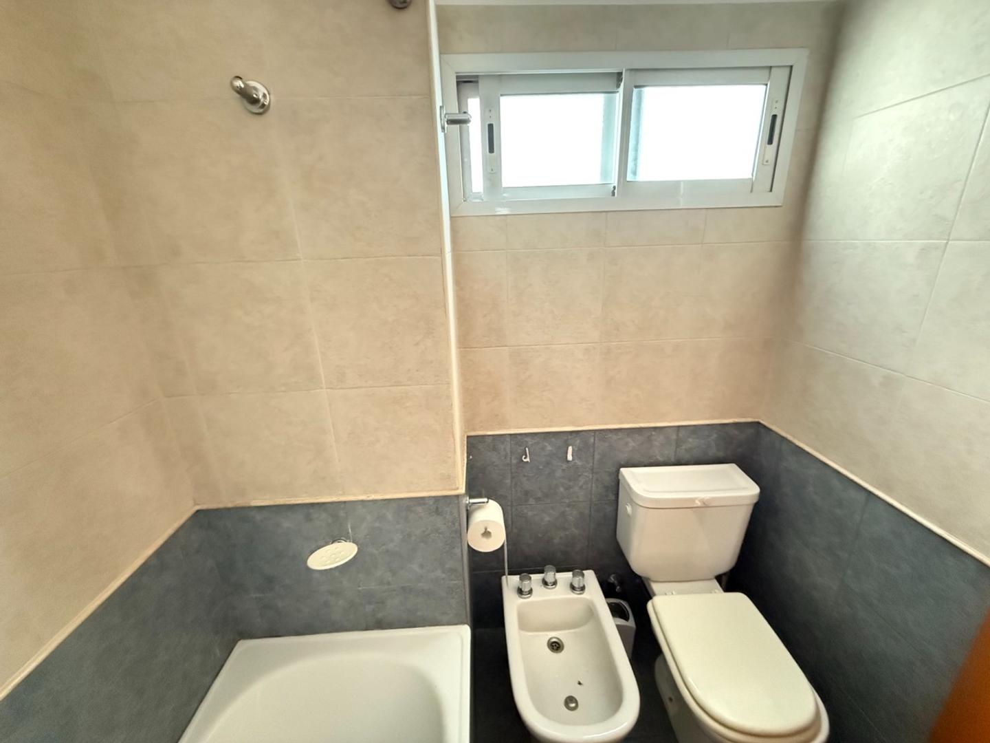 Baño con bañera, vanitory y ventilación natural.